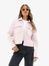 The Blakely Ellie Jacket in pink is crafted from soft felt fabric and lined for a structured fit, featuring a gun metal zip and pocket front. Wear as an outer layer to elevate everyday dressing.