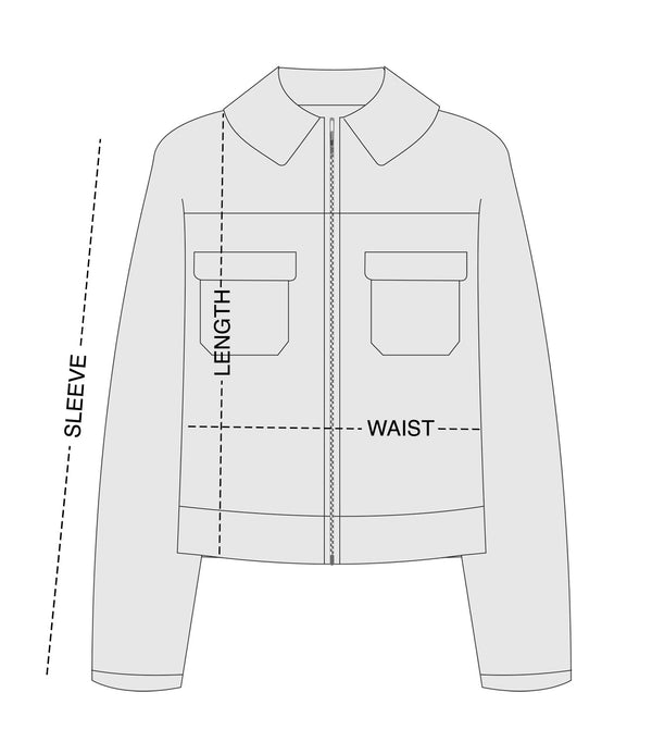 The Ellie Jacket is crafted from soft felt fabric and lined for a structured fit. Designed with a full gun metal zip, double breast pocket front and a subtle cuff tab logo detail. A perfect outer layer made to elevate everyday dressing.