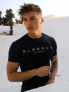 Introducing the Kade T-Shirt in Marl Grey, a slim-fit t-shirt made from a soft cotton blend. It has short sleeves, a crewneck collar, and is finished with Blakely branding on the centre front.