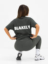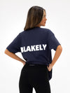 Introducing our Kayla T-Shirt in True Navy, crafted from a soft cotton blend and designed with a relaxed fit for comfort. This T-Shirt features our bold Blakely logo printed on the back, with a plain front.