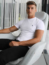 Introducing the Nicol T-Shirt in gold, a slim-fit t-shirt made from a soft cotton blend. It has short sleeves, a crewneck collar, and is finished with Anchor branding on the chest.
